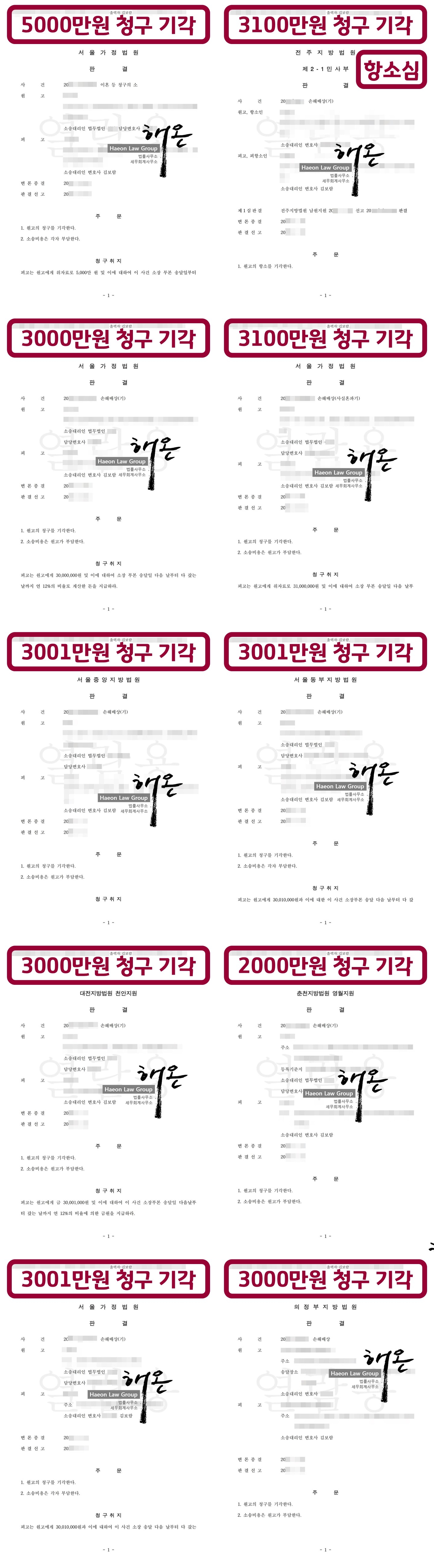 • Multiple victories representing plaintiffs in adultery cases, securing the full amount of damages claimed (30 million KRW ≈ $21,400 USD).